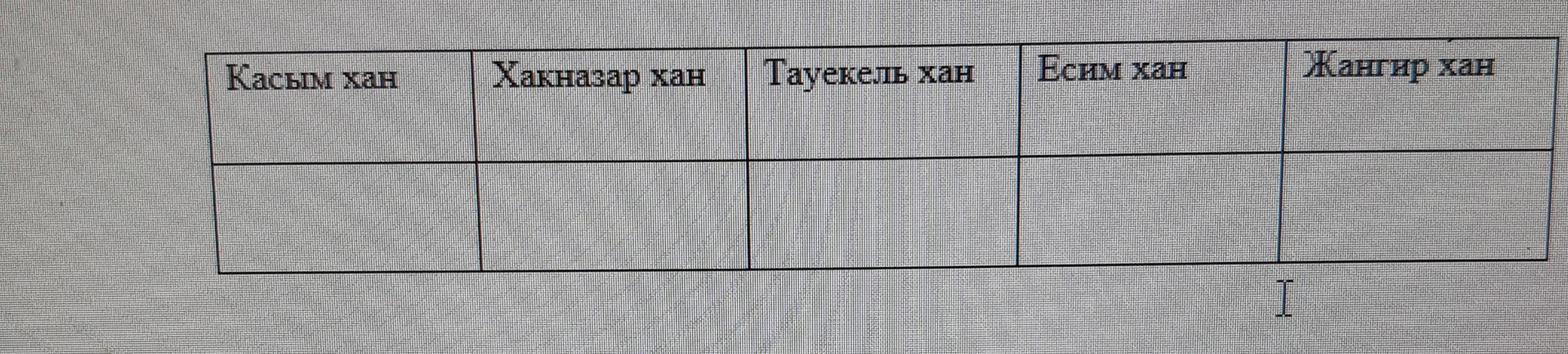 Касым хан Хакназар хан Тауекель хан Есим хан Жангир хан ( Там еще таблица )