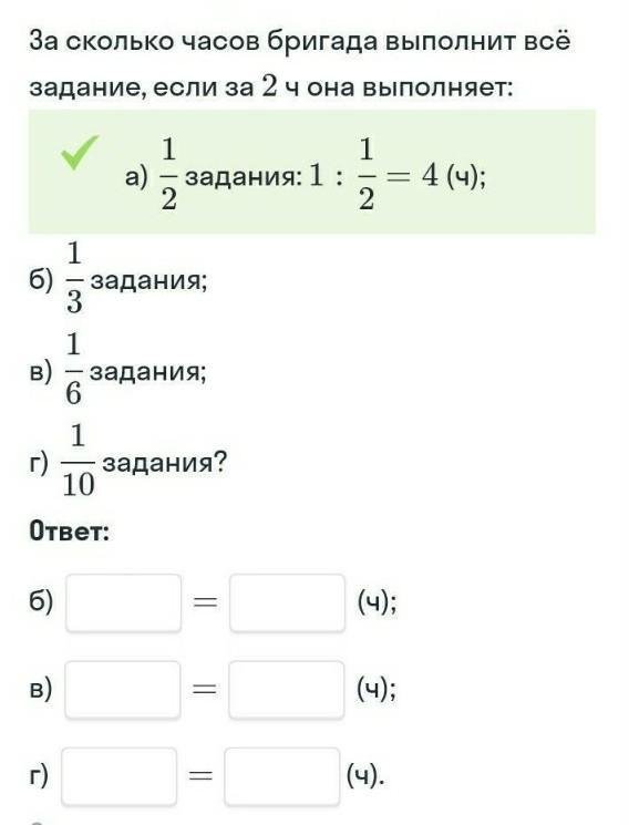 1/3 задания - 4 : 3 * 1 = 1 1/3 часа