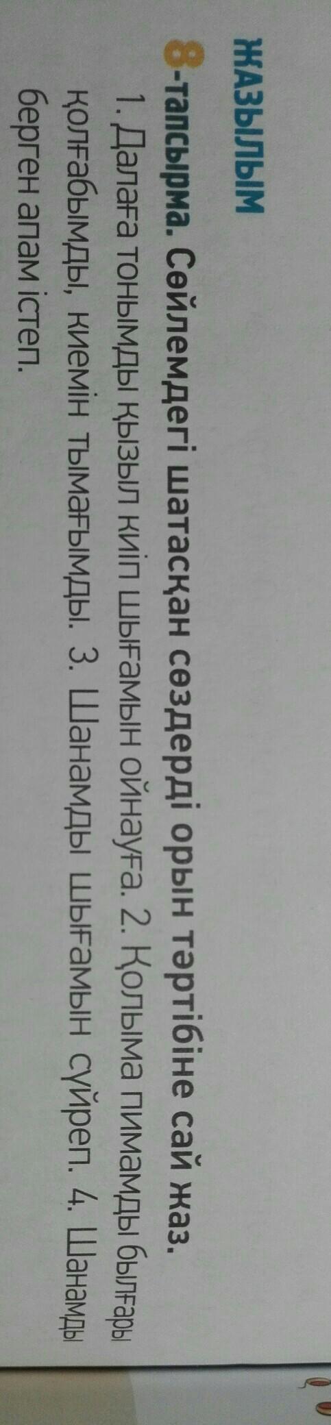 -тапсырма. Сөйлемдегі шатасқан сөздерді орын тәртібіне сай жаз.