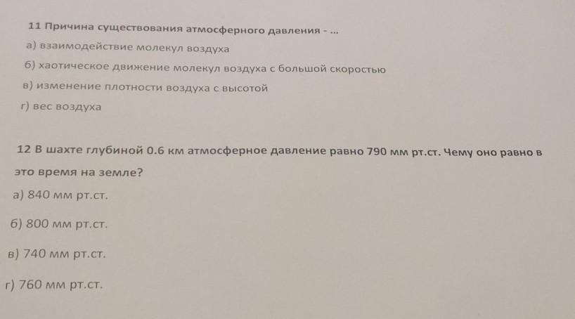 1) Причиной существование атмосферного давления является то. что воздух как и любой другой газ обладает собственным весом. Действуя силой равной своему весу на вес тела атмосфера оказывает давление.