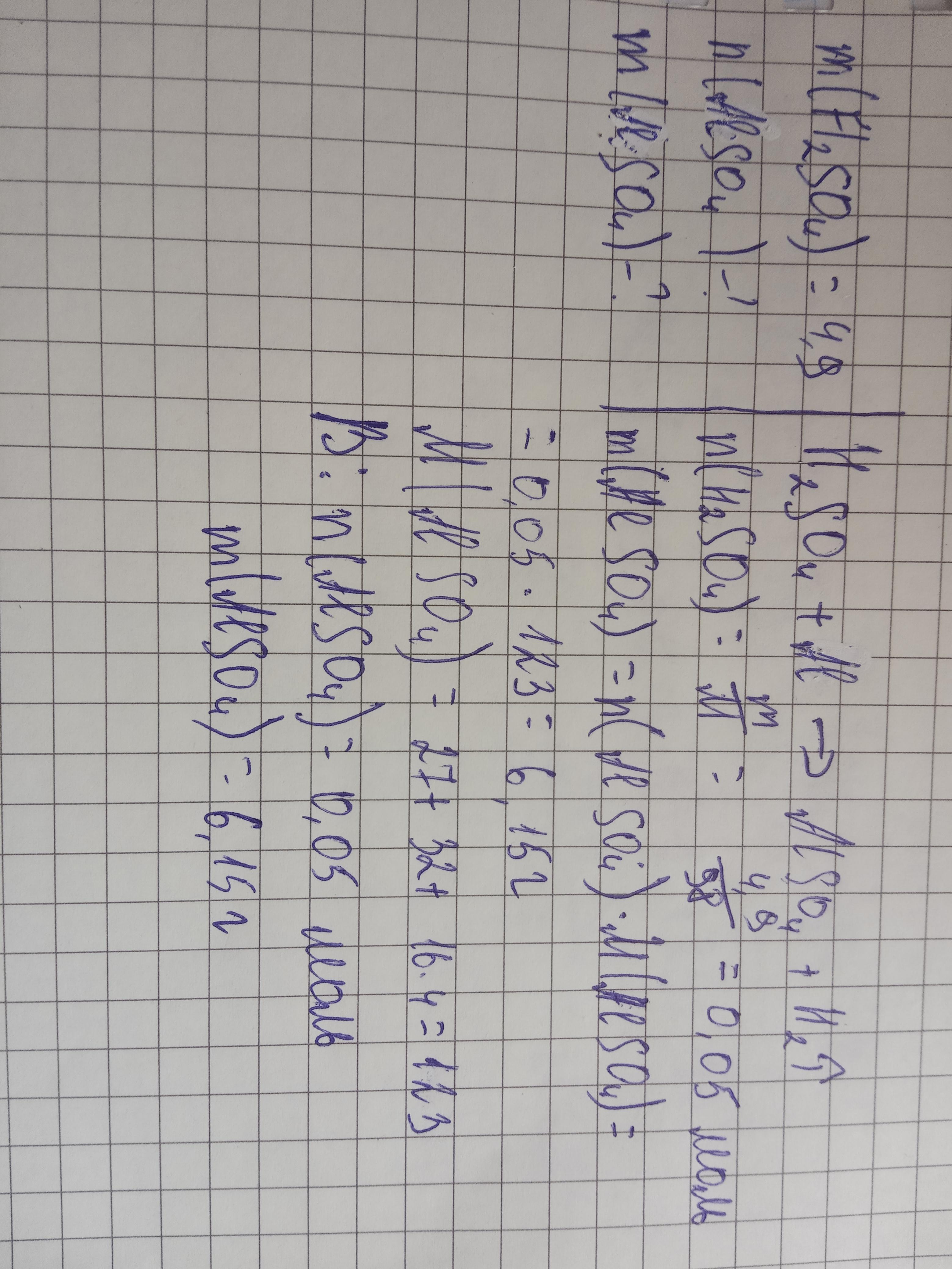 результаті взаємодії 4,9 г сульфатної кислоти з алюмінієм.