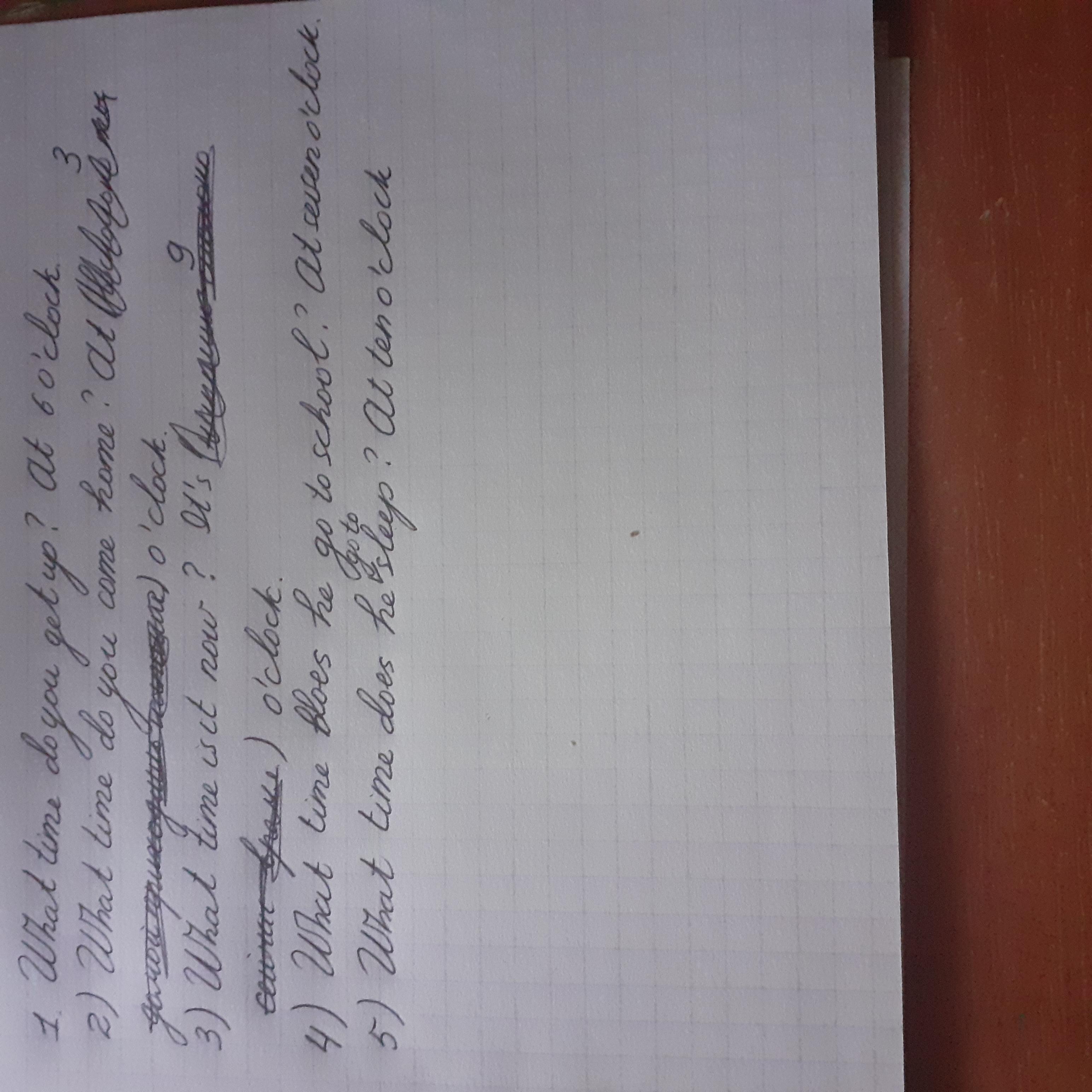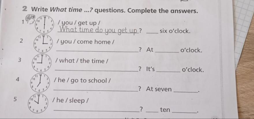 What time do you come home? At three o’clock.