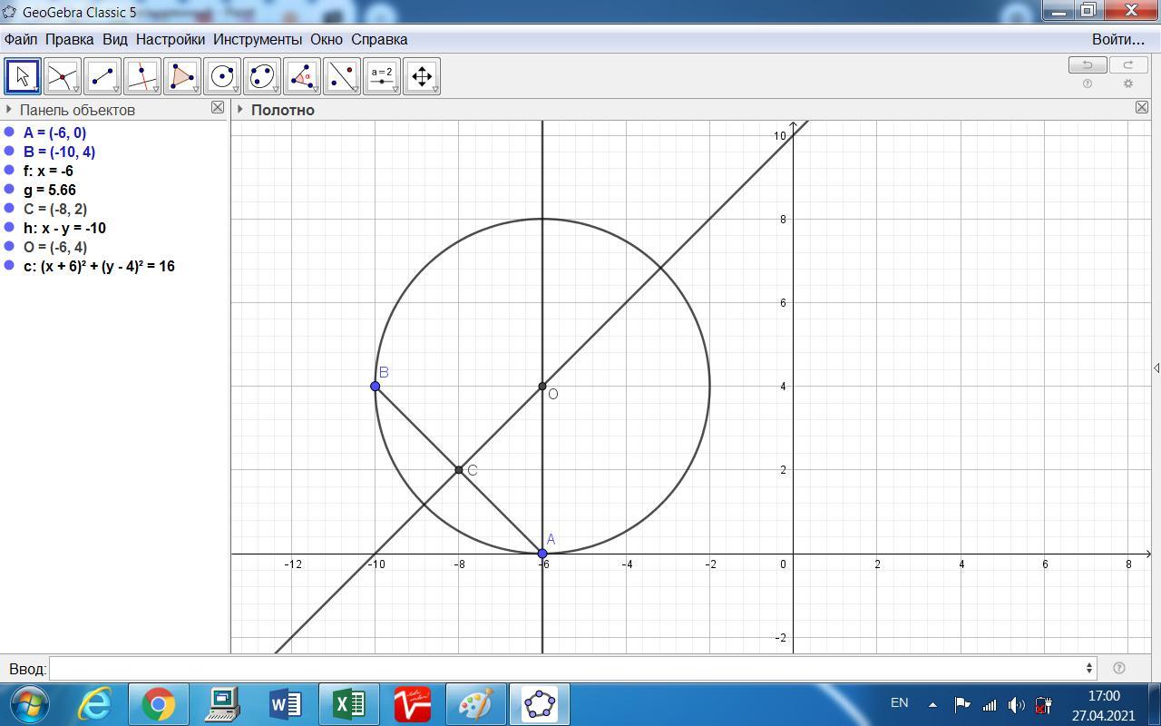 ке А(-6; 0) и проходящей через точку B(-10; 4).