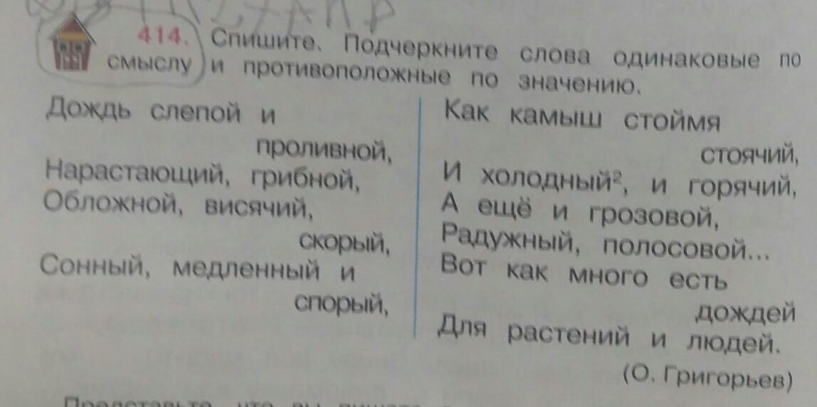 Спишите.Подчеркните слова олиноковые по смыслу и противоположные по значению.
