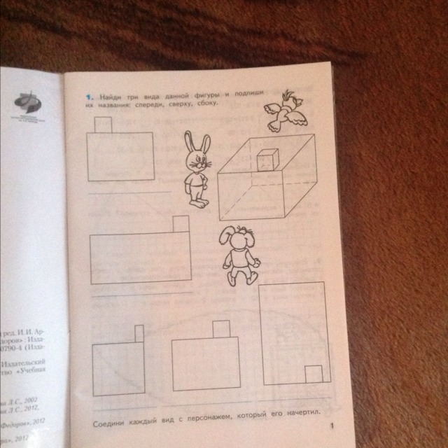 Помогите решить пожалуйста найдите три вида данной фигуры и подпишите их названия спериди сбоку снизу