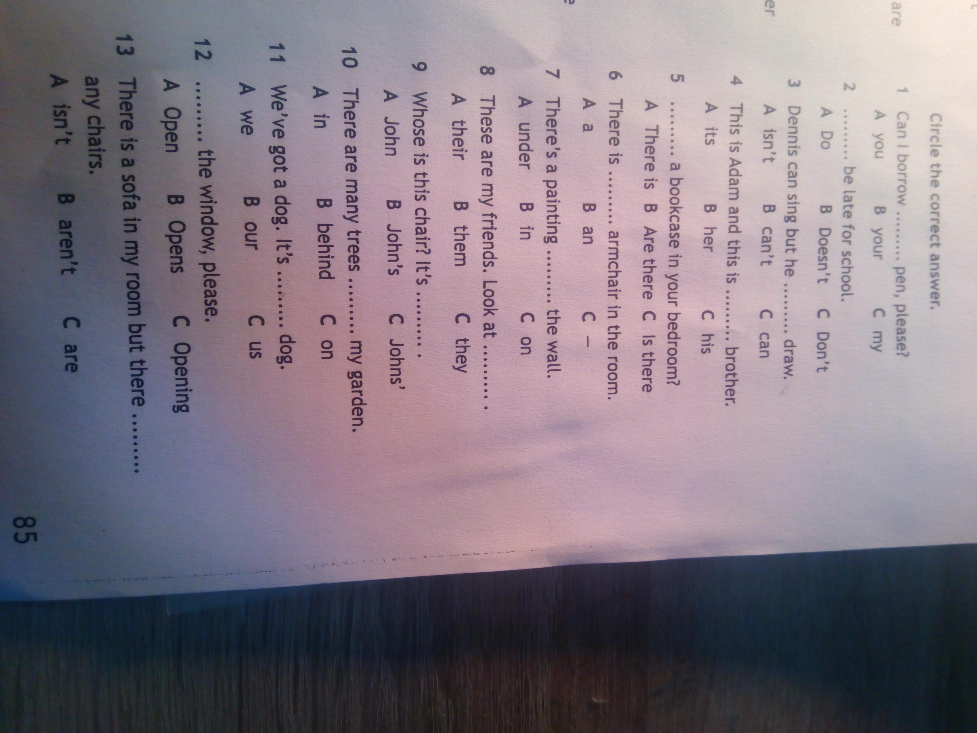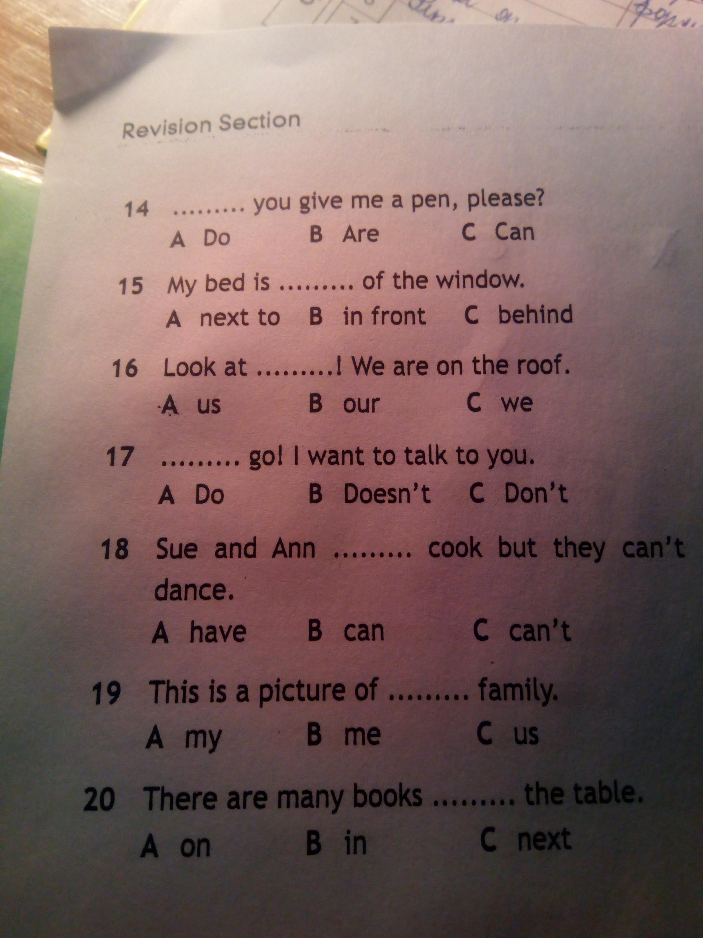 1. your 2. Don`t 3. Can`t 4. his 5. Is there 6. a 7. On.