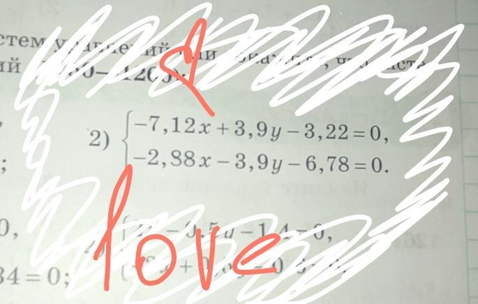 {-7,12х+3,9у-3,22=0, {-2,88х-3,9у-6,78=0 также сложим