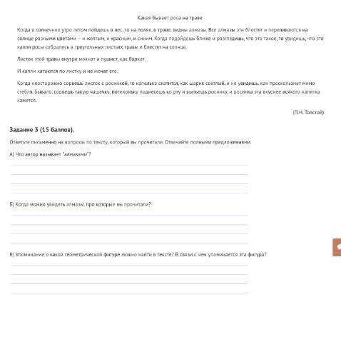 Б) Эти алмазы можно увидеть утром в лесу, когда ярко светит солнце.