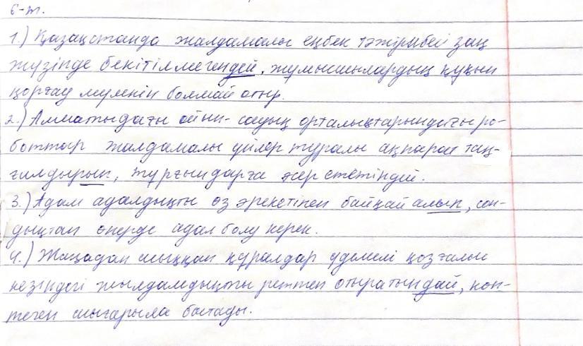 1. Қазақстанда жалдамалы еңбек тәжірибесі заң жүзінде бекітілмегендіктен, жұмысшылардың құқын қорғау мүмкін болмай отыр. 2. Алматыдағы ойын-сауық орталықтарындағы роботтар жалдамалы тұрғынүй туралы