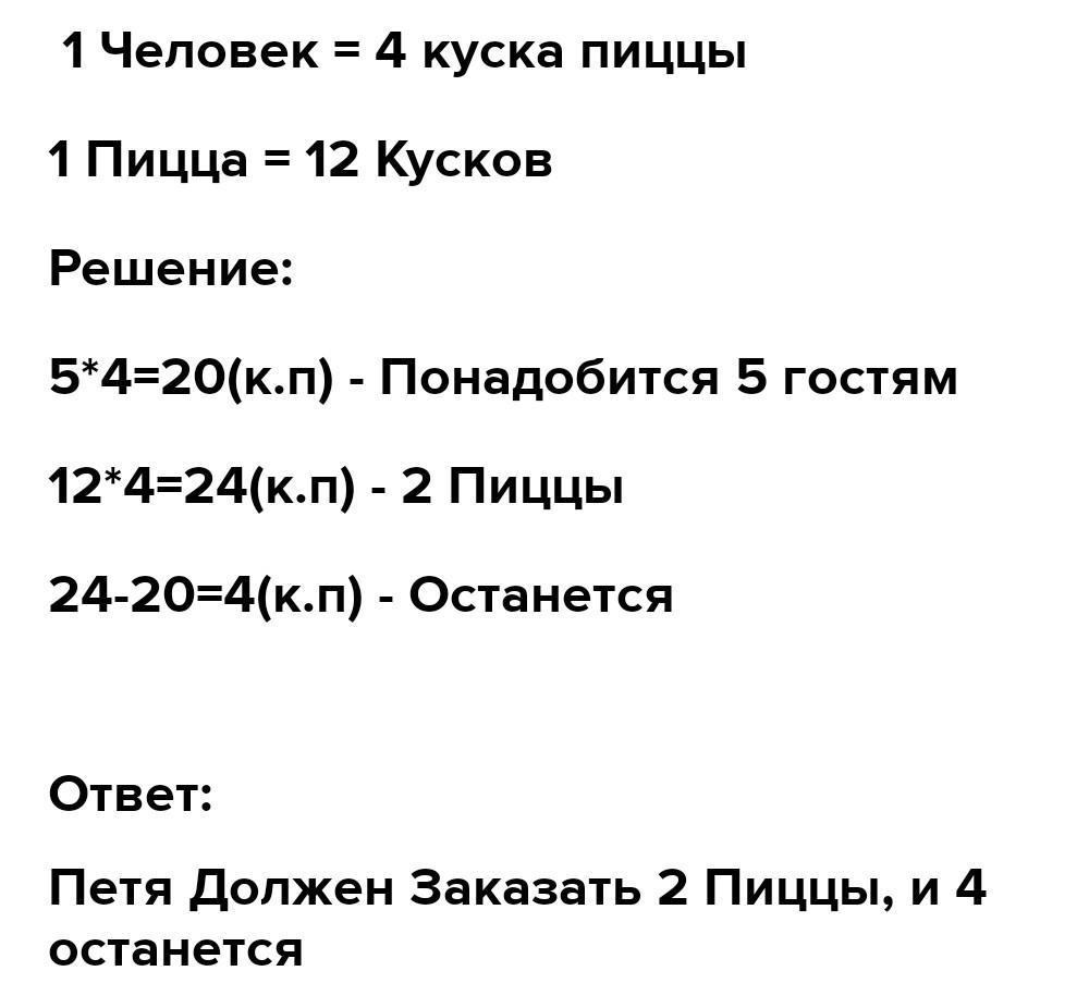 Петя хочет на свой день рождения угостить гостей пиццей, причём так, чтобы