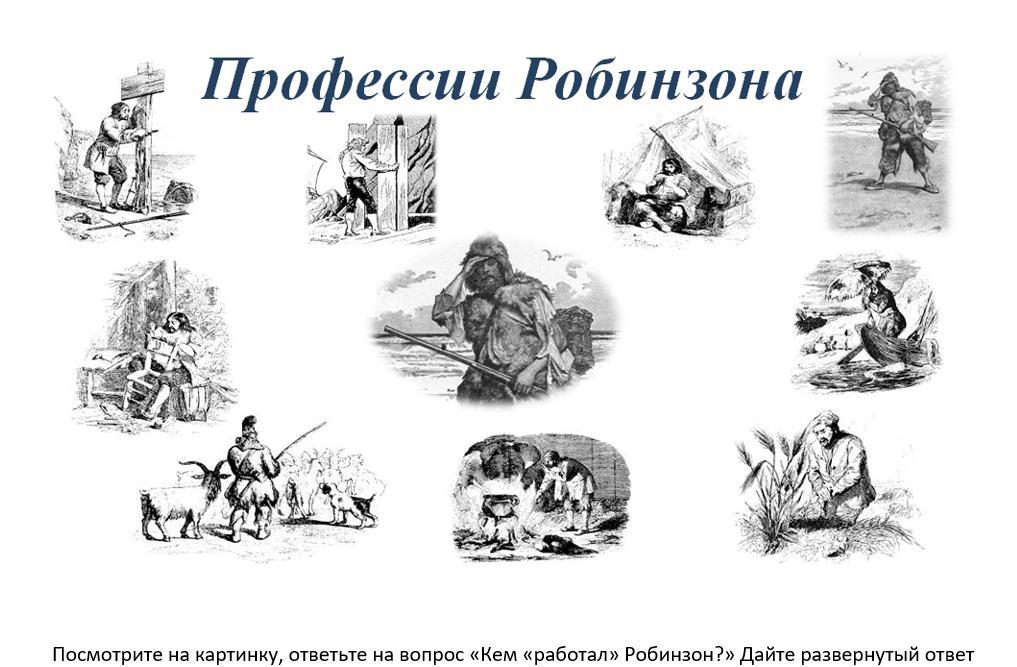 Посмотрите на картинку, ответьте на вопрос «Кем «работал» Робинзон?» Дайте развернутый ответ! Помогите пожалуйста ЛИТЕРАТУРА