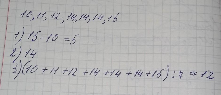 3) (14+15+12+14+11+14+10)/7=12 6/7