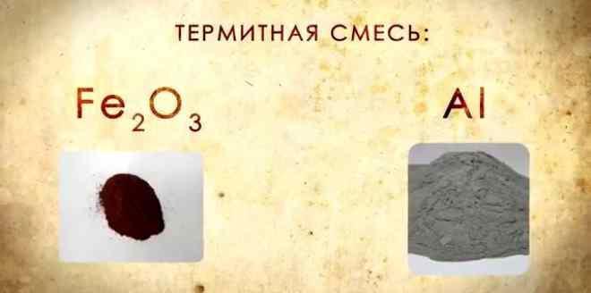 Он представляет собою смесь алюминиевой пудры или опилок с железной окалиной (оксид железа Fe3O4).