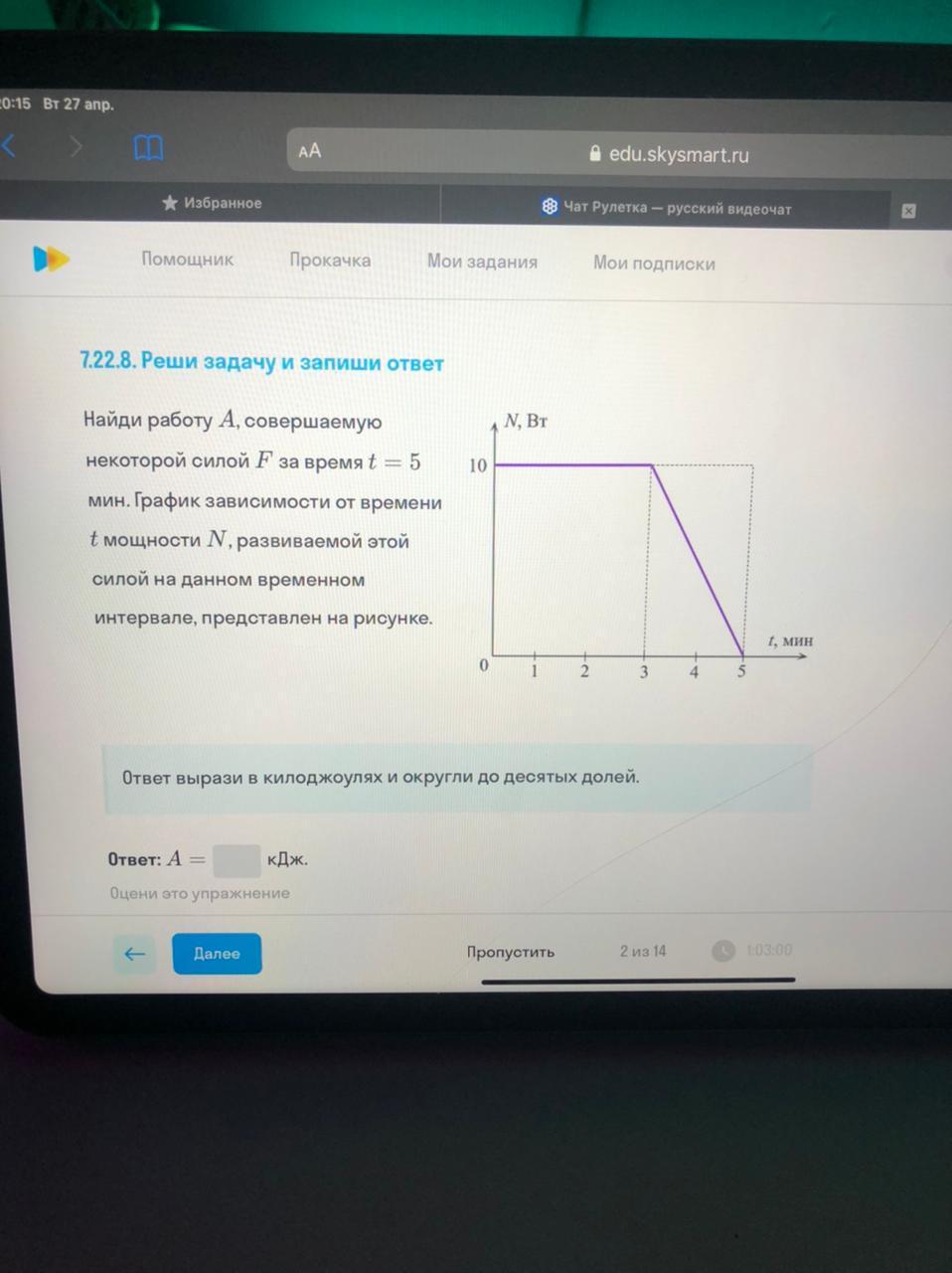 A₂ = N·t₂/2 = 10·2·60 / 2 = 600 Дж