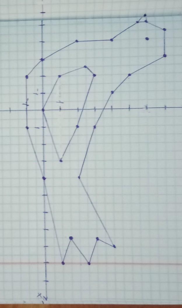 (-3; 7), (-4,5; 7), (-5; 6), (-5,5; 6), (-5; 5,5), (-4; 4), (-4; 2), (-3; 0), (-2; -1), (1; -1), (4; 0), (9; 1), (7,5; 1,5), (9; 2,5), (7,5; 2,5), (8; 3), (4; 2), (1; 3), (-1; 4), (-2; 5), (-3; 7).
