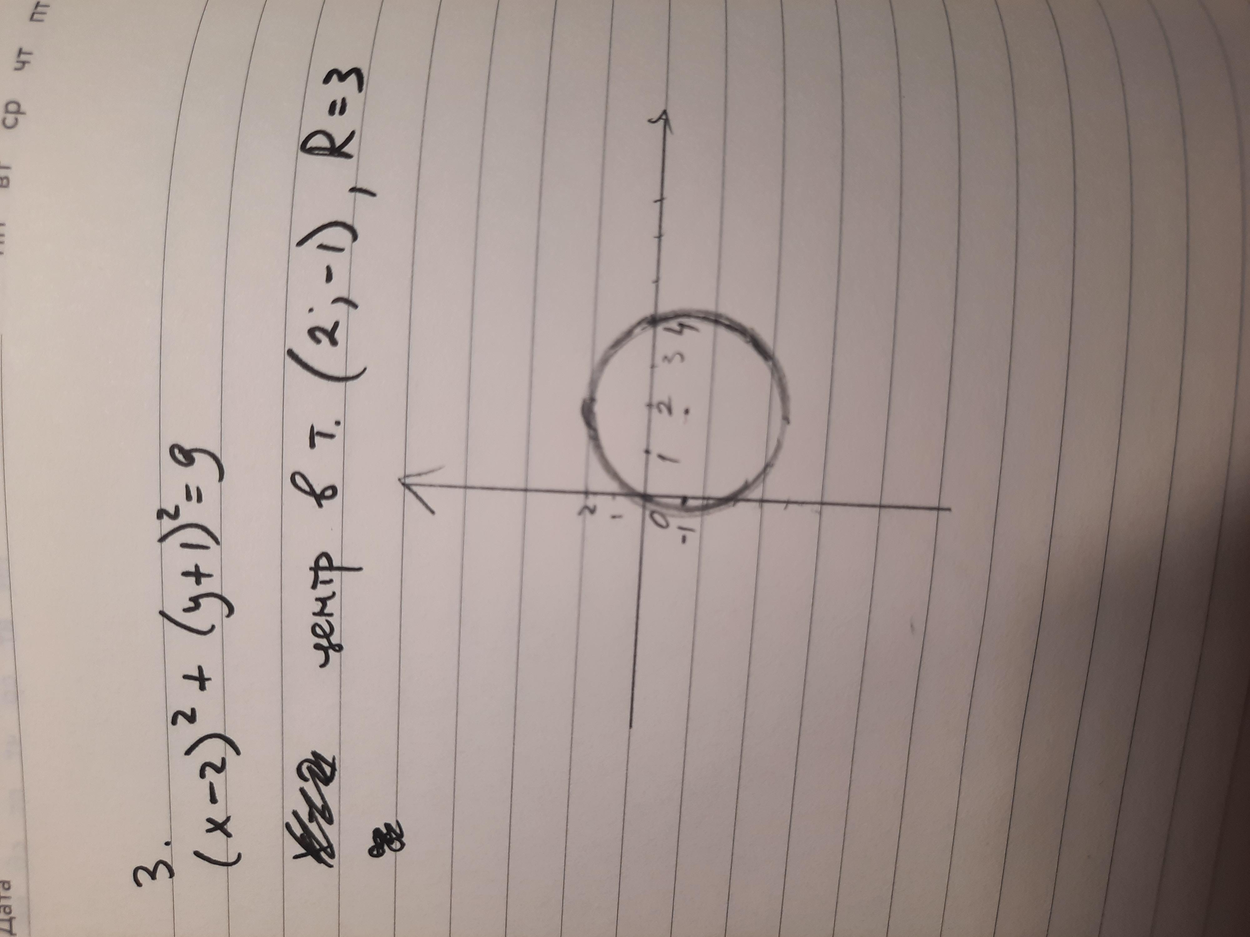 Координаты центра окружности - (2;-1). Отсчитывай от каждых 4 сторон 3 клетки