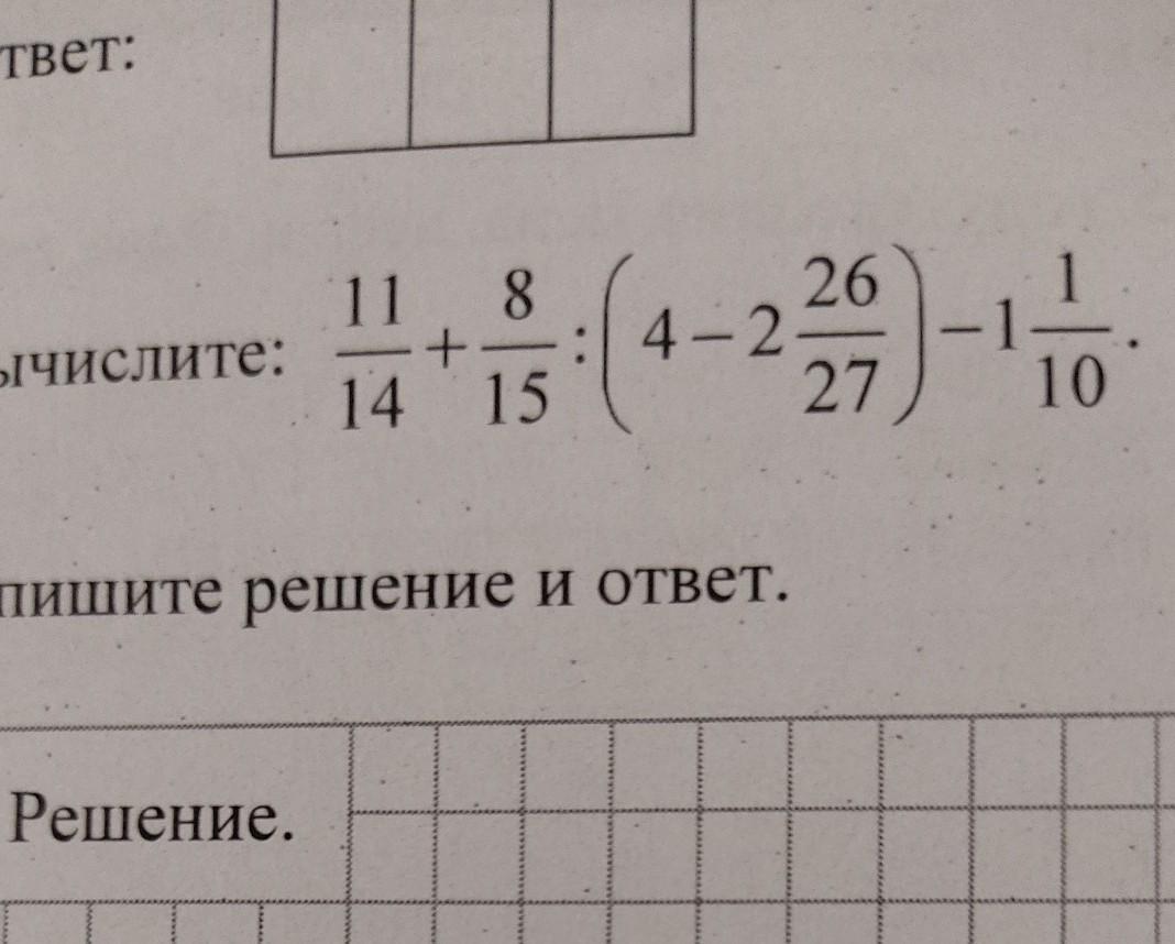 11/14 + 8/15 ÷ (4-2 26/27) -1 1/10