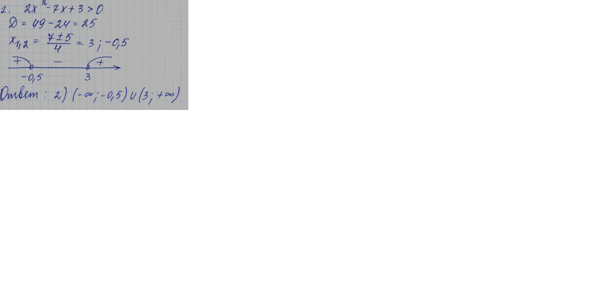х=1, тогда 2*1-7*1+3=2-7-3<0 (нам не подходит)