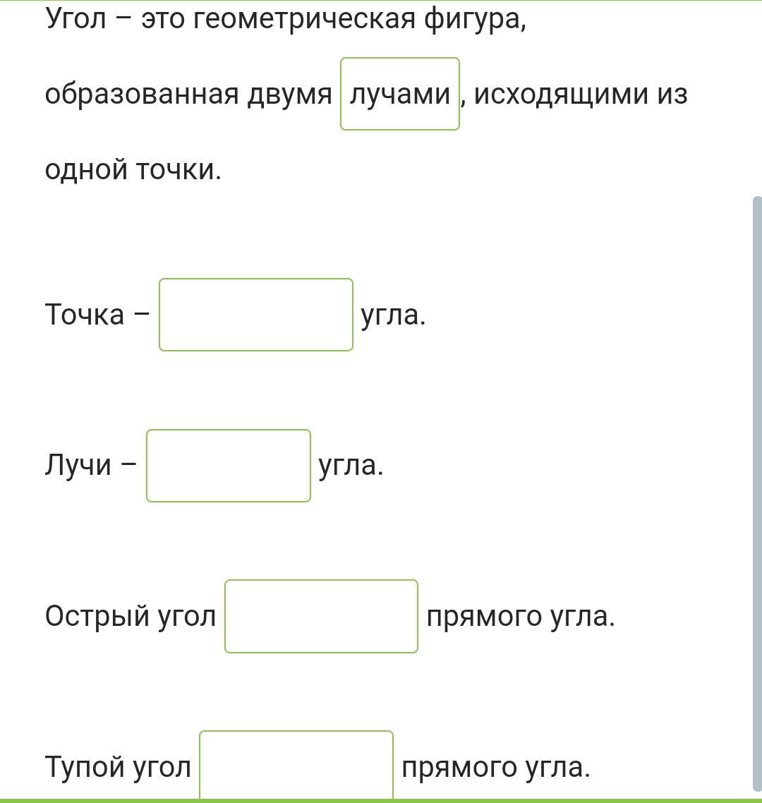 Угол который полностью помещается внутри прямого угла называется острым.
