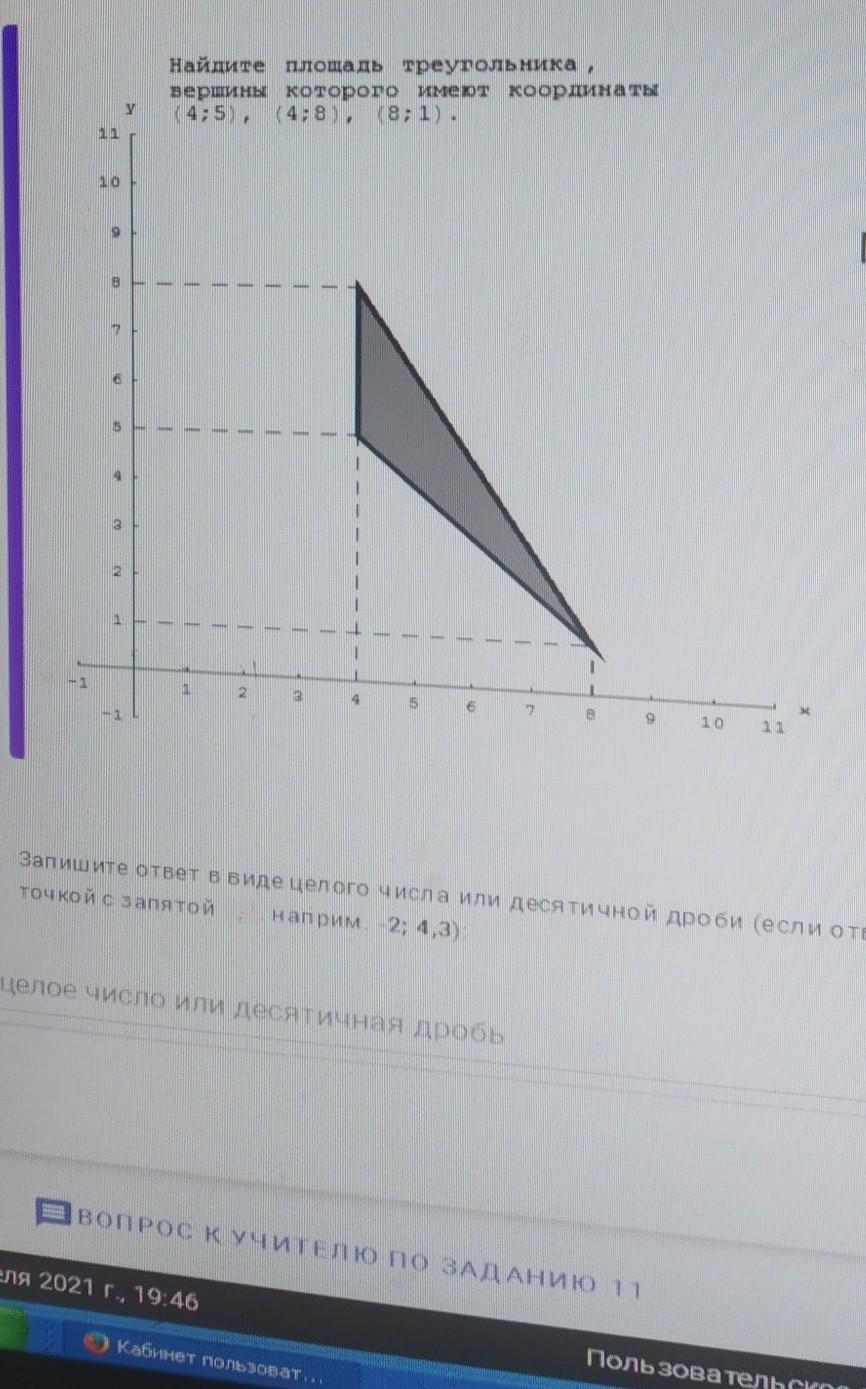 Площадь большого треугольника=14-площадь маленького=8 остается площадь заштрихованного=6