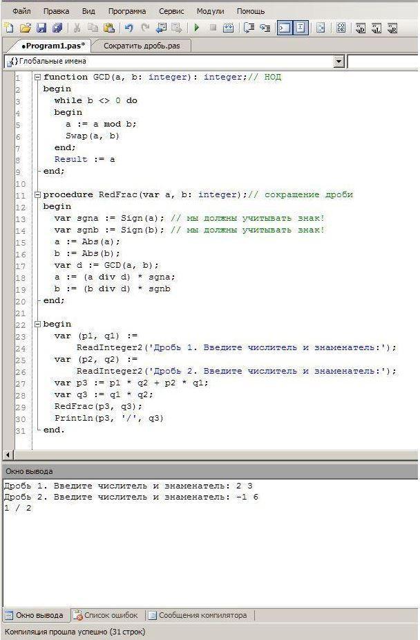 procedure RedFrac(var a, b: integer); // сокращение дроби begin