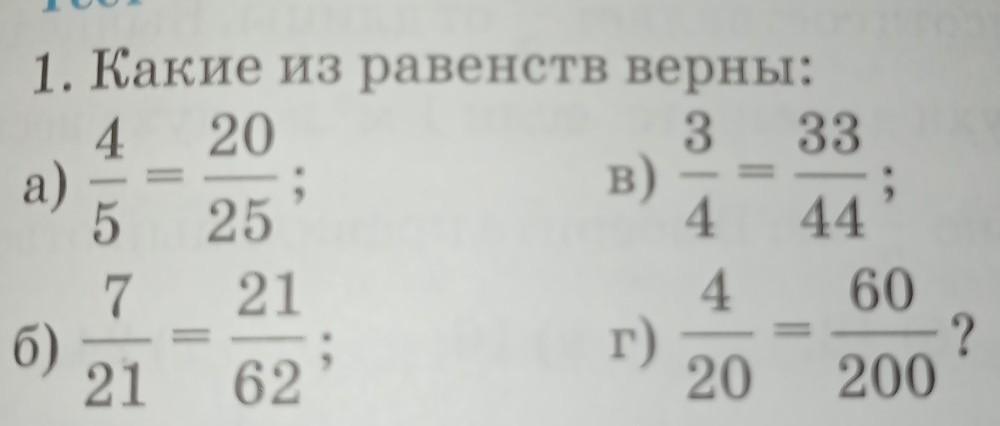 а). 4/5=20/25 - верно, т. к. 4*5/5*5=20/25 или 2*25=5*20