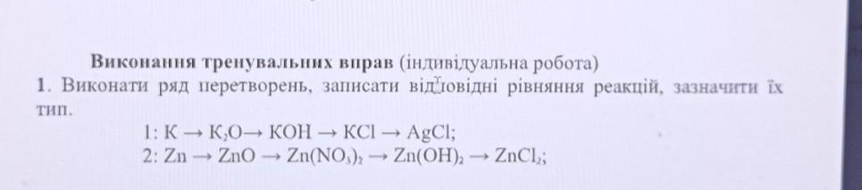 перевод на русский: Выполнить ряд перевоплощений, записать соответствующие уравнения реакций, указать их тип