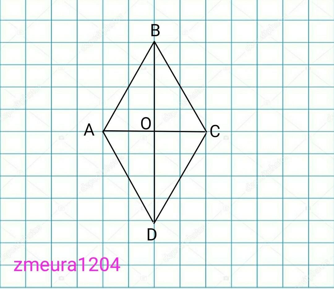 Диагонали ромба пересекаются перпендикулярно и точкой пересечения делятся пополам.