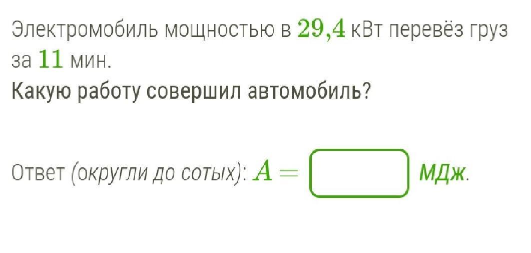 A=Nt=29400 Вт × 660 с=19404000 Дж=19404 кДж=19.40МДж