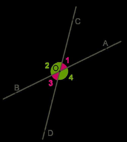 А сума всіх вертикальних кутів при перетині двох прямих = 360° градусів.
