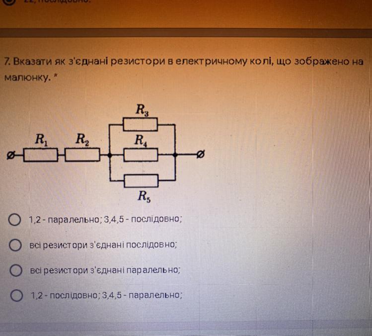 Ответ: 1,2 - послідовно, 3,4,5 - паралельно