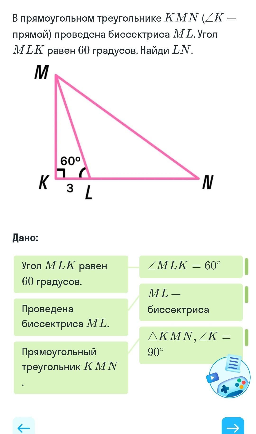 2) Рассмотрим треугольник MLN. По т. о сумме углов треугольника ∠MNL = 180° - ∠NML - ∠MLN