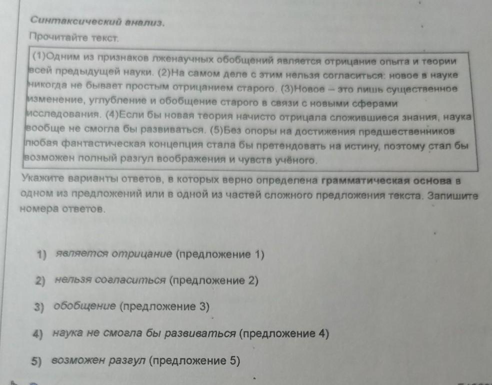 Укажите варианты ответов, в которых верно определена грамматическая основа в