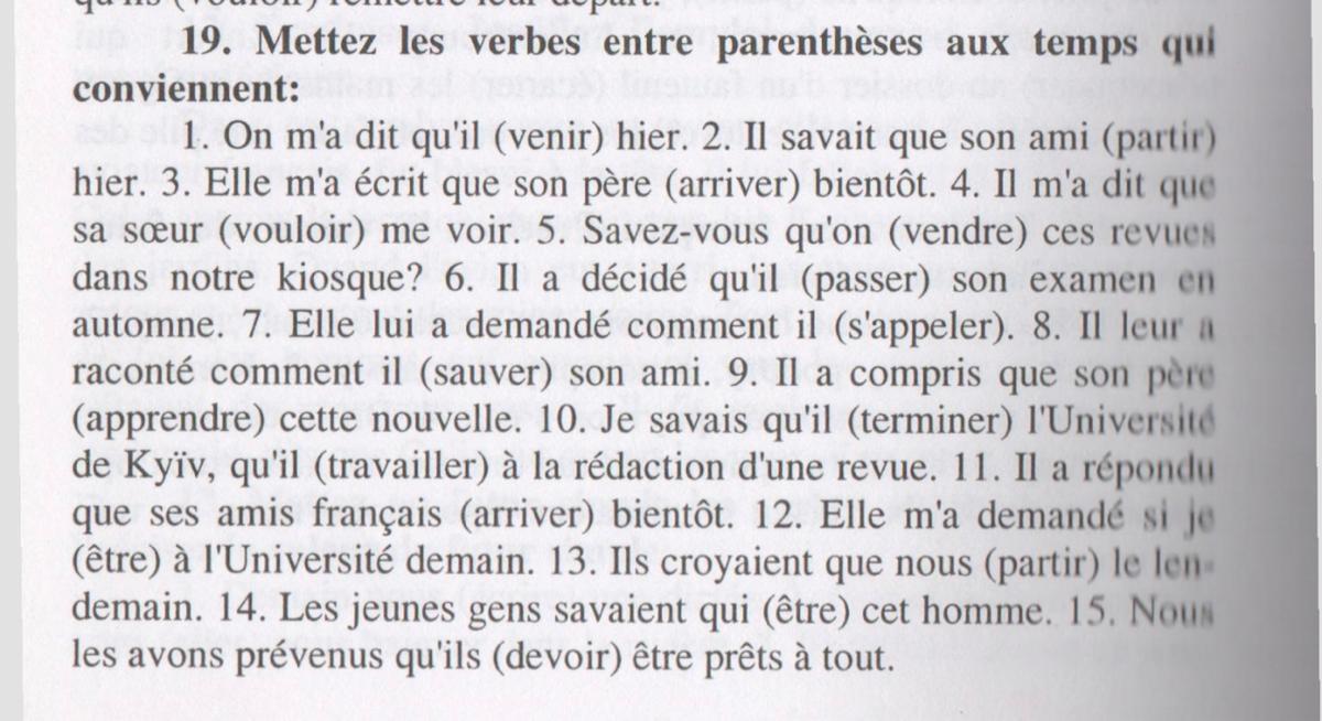 19. Mettez les verbes entre parenthèses aux temps <|iii conviennent: