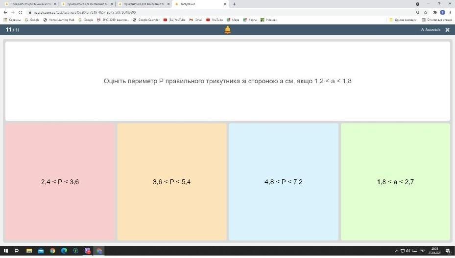 Так как треугольник правильный, периметр будет 3а, поэтому умножаем всё на 3 и получаем промежуток от 3,6 до 5,4