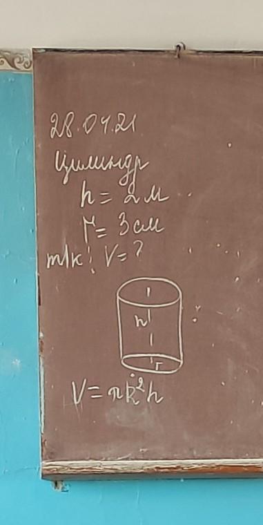 по формуле мы можем увидеть что радиус 3 см и высота 2 и формула V=πr^2H