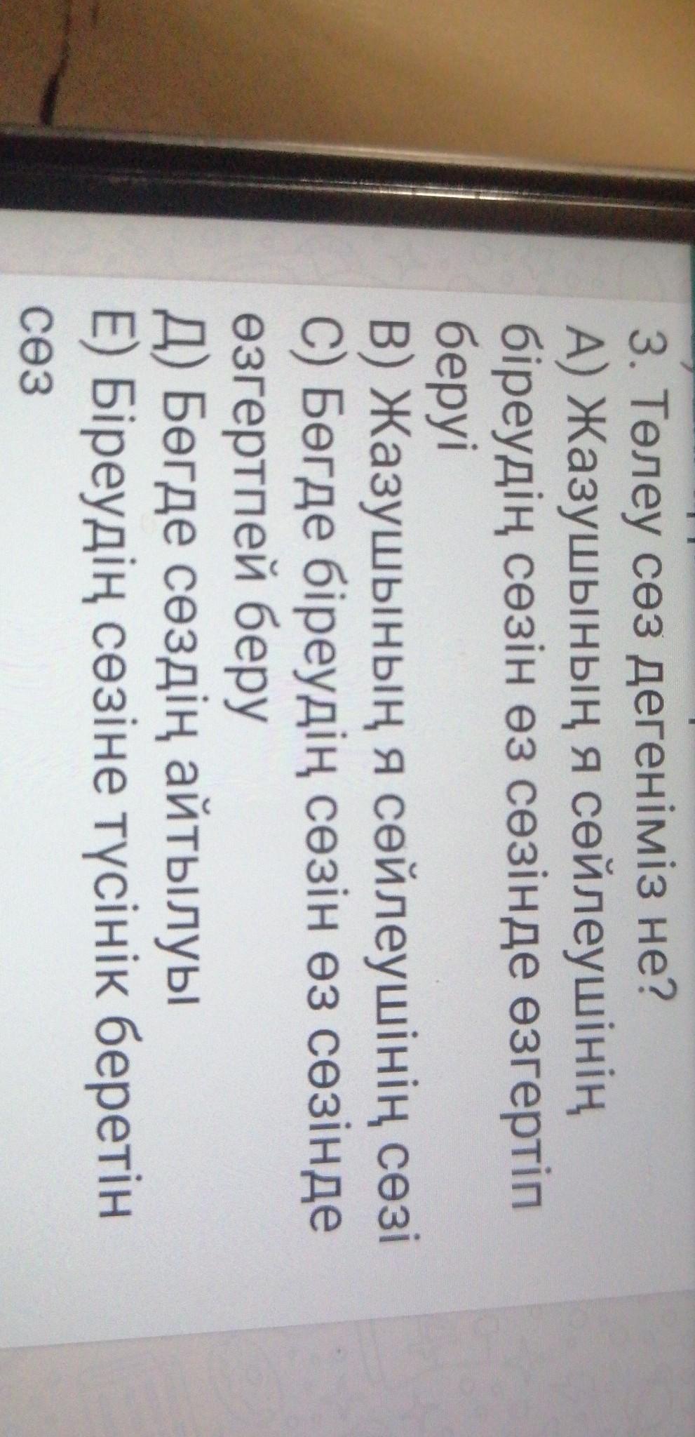 А)Жазушының сөйлеушінің біреудің сөзін өз сөзінде өзгертіп беруі.