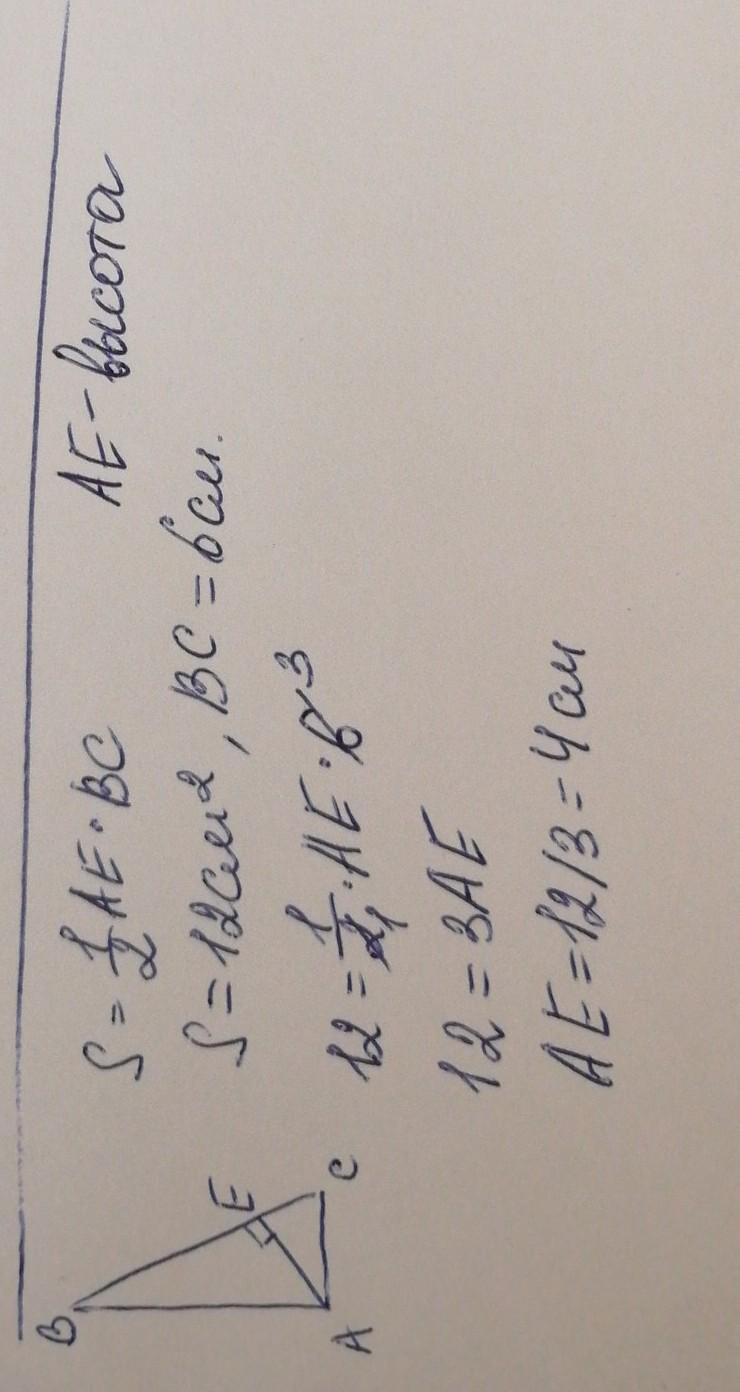 площа прямокутного трикутника становить 12 см², а гіпотенуза дорівнює 6 см. знайти висоту проведену до гіпотенузи.
