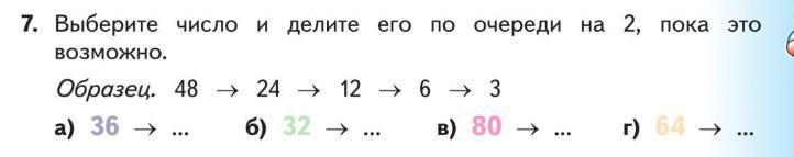 г) 64 ⇒ 32 ⇒ 16 ⇒ 8 ⇒ 4 ⇒ 2 ⇒ 1