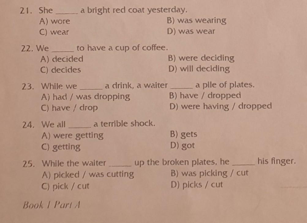 Відповідь: 21) a, 22) a, 23) d, 24) d, 25) b.