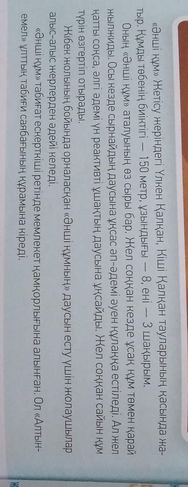Пою́щий барха́н — гора из песка светлых тонов, имеет длину до 3 км и высоту 150 м. Бархан расположен в коридоре между гребнями Джунгарского Алатау — Большого и Малого Калканов на территории национального парка Алтын-Эмель в Алматинской области Казахстана, в 183 км к северо-востоку от Алма-Аты. Поющий бархан — феномен природы, знаменит тем, что в сухую погоду пески издают звук, похожий на мелодию звонкого органа.