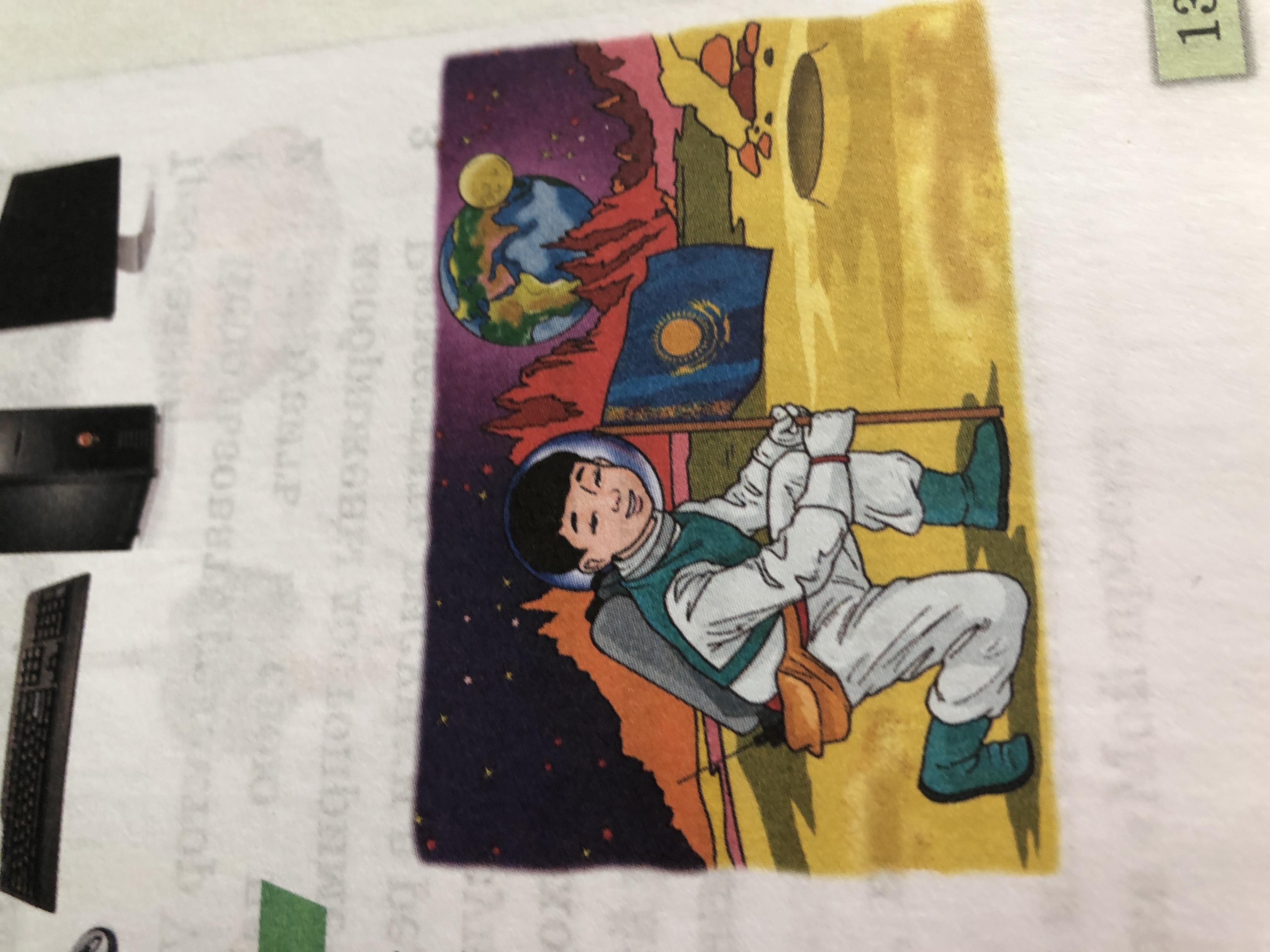 однажды мальчик который жил в стране Казахстане росказивал про свою будущую профессию. Он мечтал стать космонавтом. И учитель спросил у него ,на какую планету ты полетиш и как ты это представляешь. Он сказал на ту планету на которую никто не вясаживался .Как только я высажусь на неё я сразу поставлю на неё флаг нашей страны,сфотографирую нашу планету,если там будут инопланетяне я с ними розберус .Заберу одного и отдам его на обследования профессора нашей страны.Таким образом я поставлю нашу страну на века.