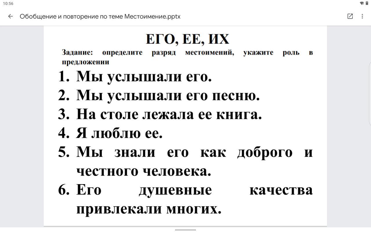 3. На столе лежала её (разряд-притяжательное, роль-дополнение) книга.