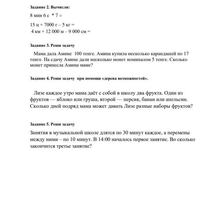 3) 100/17=5 карандашей купила Амина и у нее осталось 15 тенге сдачи, итого 3 монеты номиналом по 5 тенге