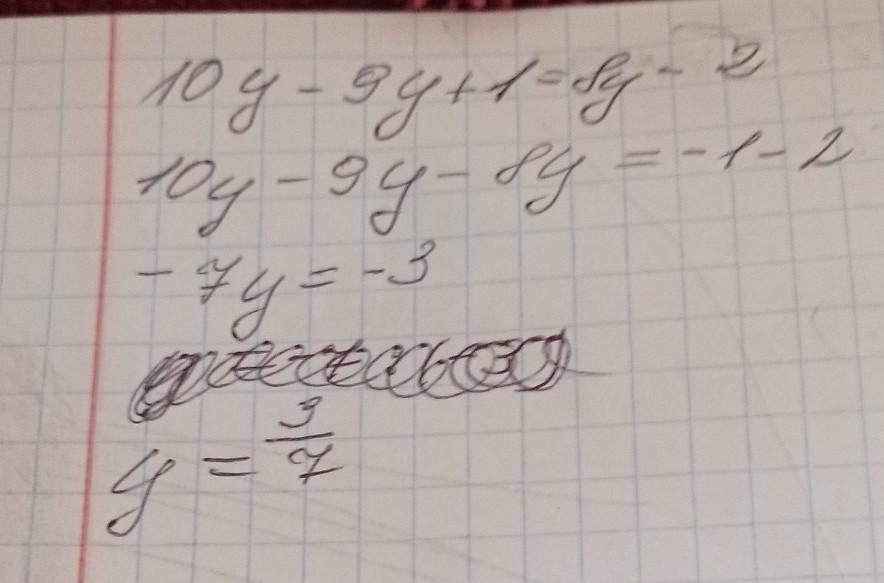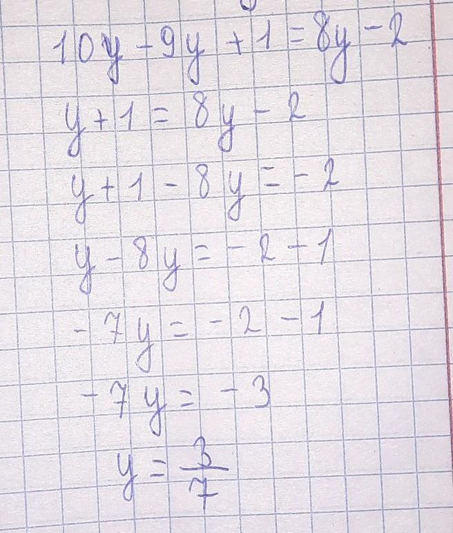 сначала это уравнение надо неизвестные числа поставить слева потом известные числа справа сколько у нас получится поделить и вышла y равно 3/7