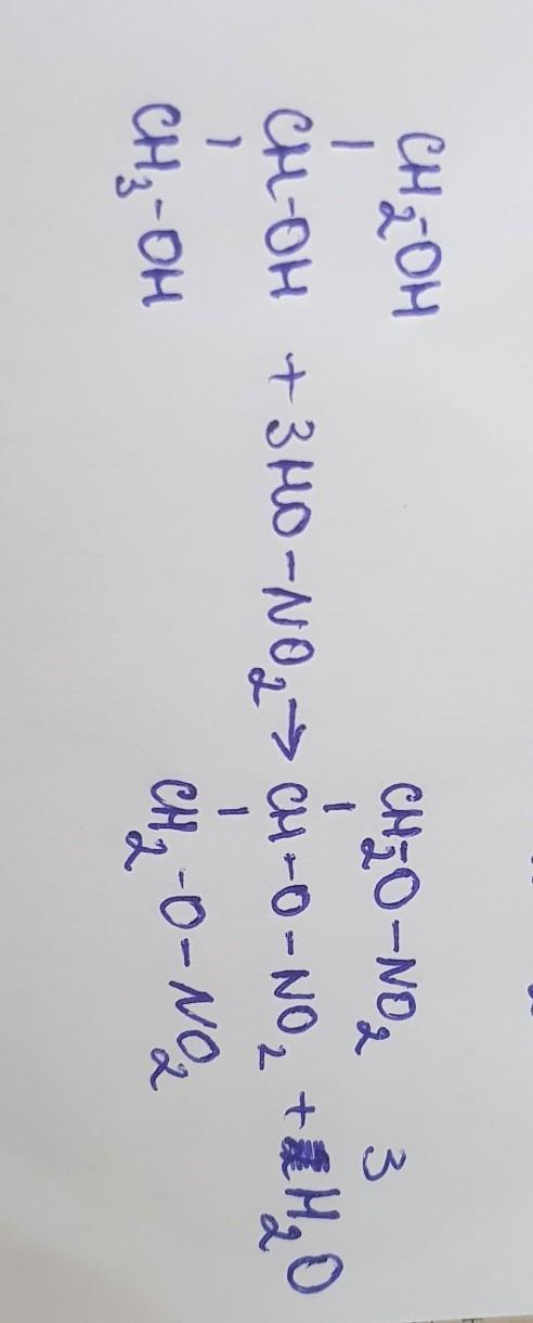 СРОЧНОООООО,ПОМОГИТЕ ПОЖАЛУЙСТА,составить уравнение реакции нитрования глицерина(образуется нитроглицерин).Учесть HNO3 в виде HO-NO2,выделив нитро-группу