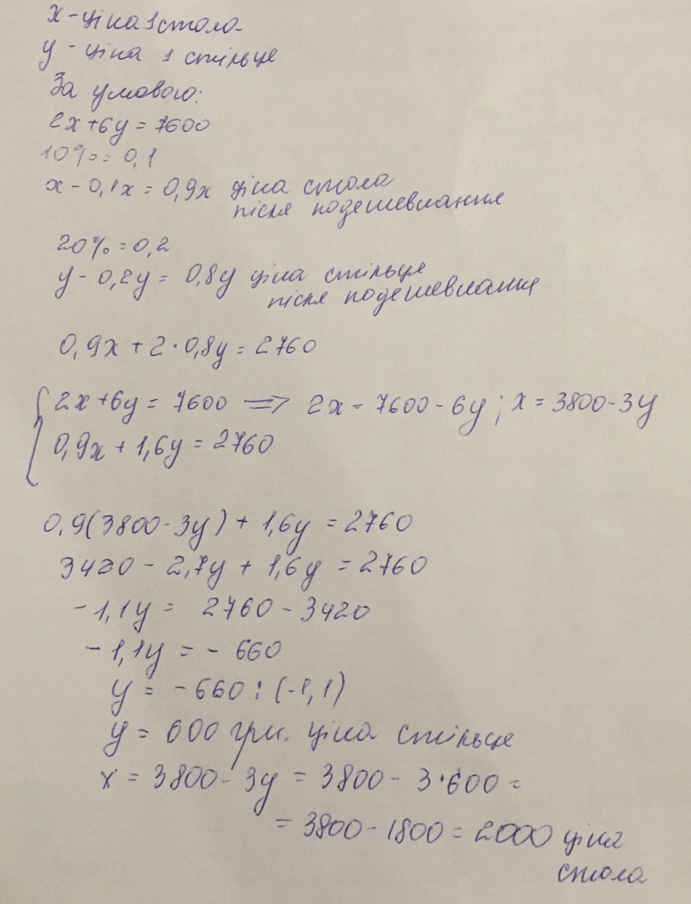 разом 2760 грн. Якою була початкова ціна одного стола і яка