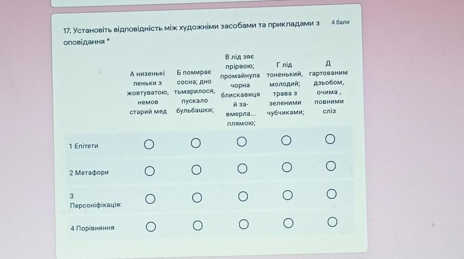 17. Установіть відповідність між художніми засобами та прикладами з