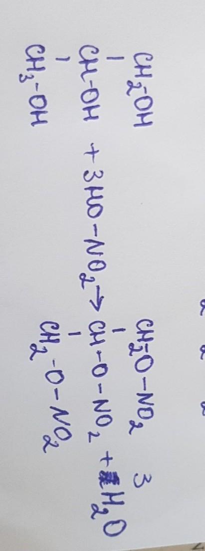 СРОЧНОО,ПОМОГИТЕ ПОЖАЛУЙСТА,составить уравнение реакции нитрования глицерина(образуется нитроглицерин).Учесть HNO3 в виде HO-NO2,выделив нитро-группу