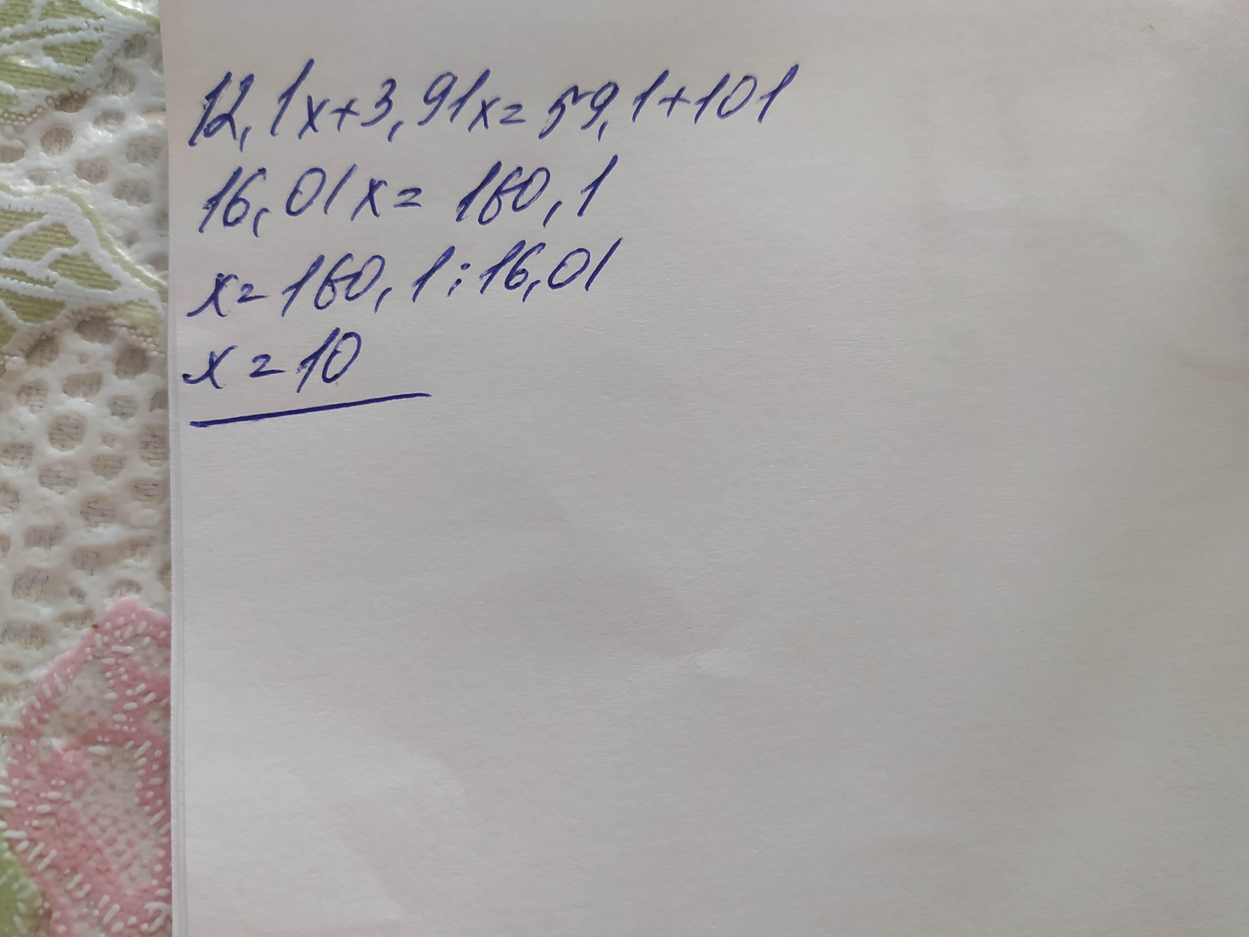 Розв'яжи рівняння: 12,1х + 3,91х - 101 = 59,1 срочно!!​